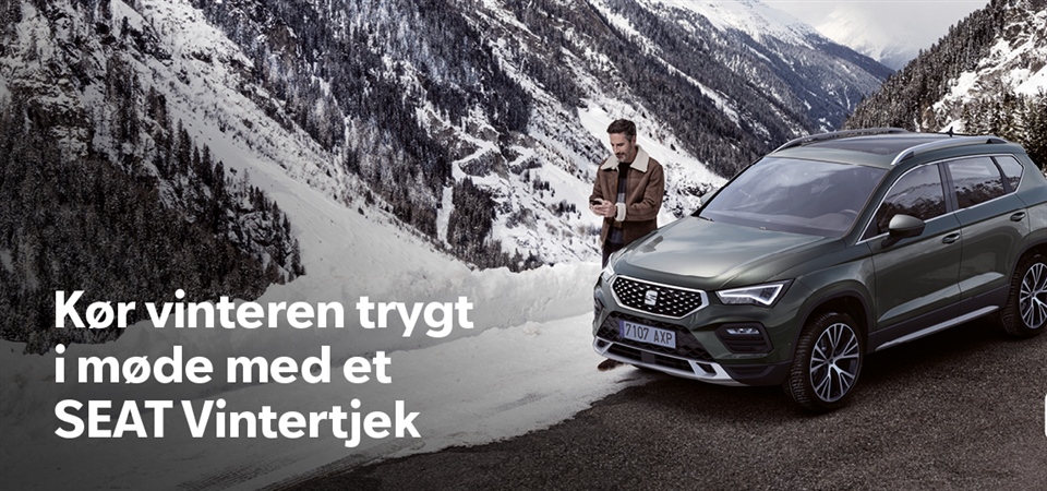 SEAT Vintertjek-kampagnen gælder fra 15. november 2025 t.o.m. 22. februar 2026. Prisen inkluderer ikke eventuelle ekstra- eller tillægsydelser.
